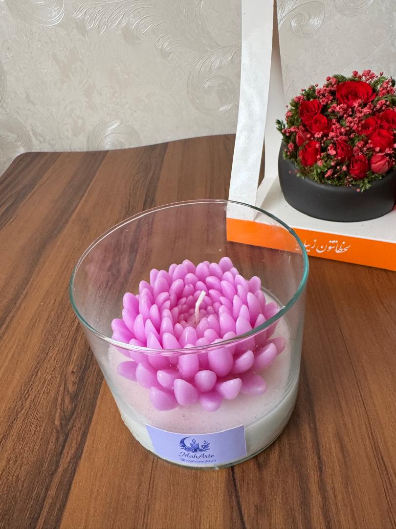 شمع دستساز موم عسل همراه بابونه های رنگی maharte