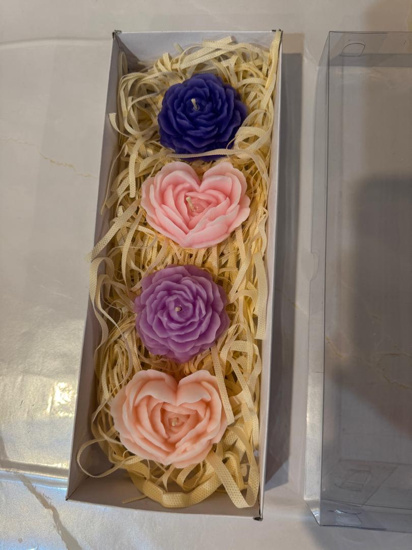 مجموع شمع های زیبا و گل های رز در یک باکس